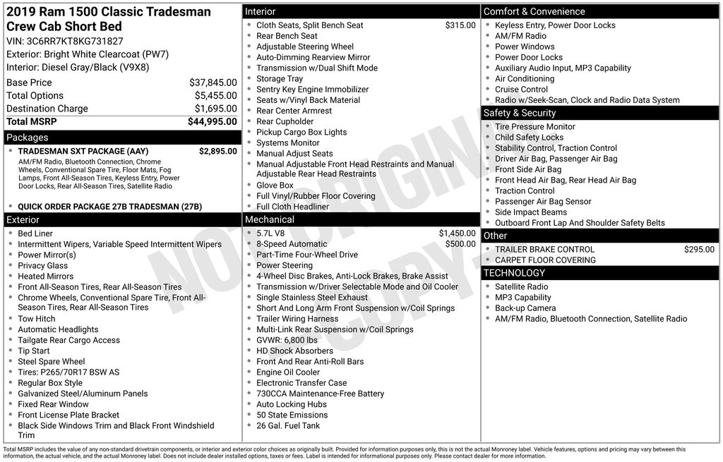 2019 Ram 1500 Classic Tradesman Truck HEMI V8 Multi Displacement VVT