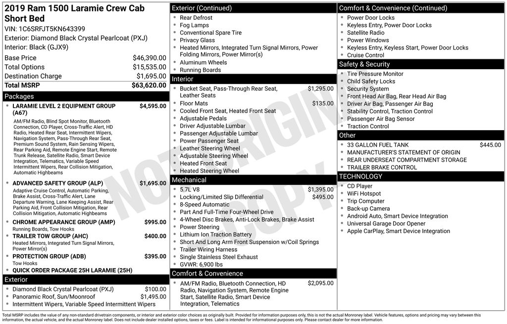 So I optioned first a 2019 Ram Bighorn,8.5 inch nav loaded screen,Level II package,4x4,3:92 axle ELocker,6ft bed.Got pricing from 5 Ram dealerships.Went to 3 Ford dealership’s and all of them never beat the price of the Ram 1500.And these were either ordered or on lots F-150 XLT trim with upgraded to 5.0L V-8 I did not want the V-6 TT turbo engine option to much money with 10 speed.Chevy’s trucks interior was even close in terms of comfort and center-stack just look old schooled.Both the Ford and the Chevy were more money or with in 900.0 dallors of the Ram 1500 but the styling and interior was just way better than the Ford F-150,and the Silverado...GM was not discounting hardly at all so the dealers were bring the price down on there side..Ford F-150’s interior was well just cheap looking with the small screen and hardly had no center storage because the shifter was there,not like the Ram 1500 had. The Ram 1500 center console is just way better design by a mile...Test drove all 3 and the Ram with the coil spring rode the best hands down and was far quieter inside while driving in city traffic during rush hour..My previous truck was a 2014 Ford F-150.I was a brand loyal kinda guy but after all the trips to these dealerships it became evident the Ram 1500 was the easy choice with my hard earn dallor..