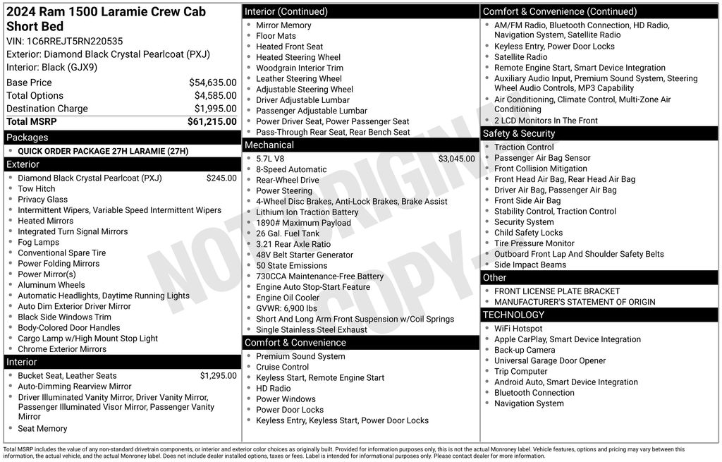 Model: 2024 RAM 1500 Laramie Crew Cab 4x2