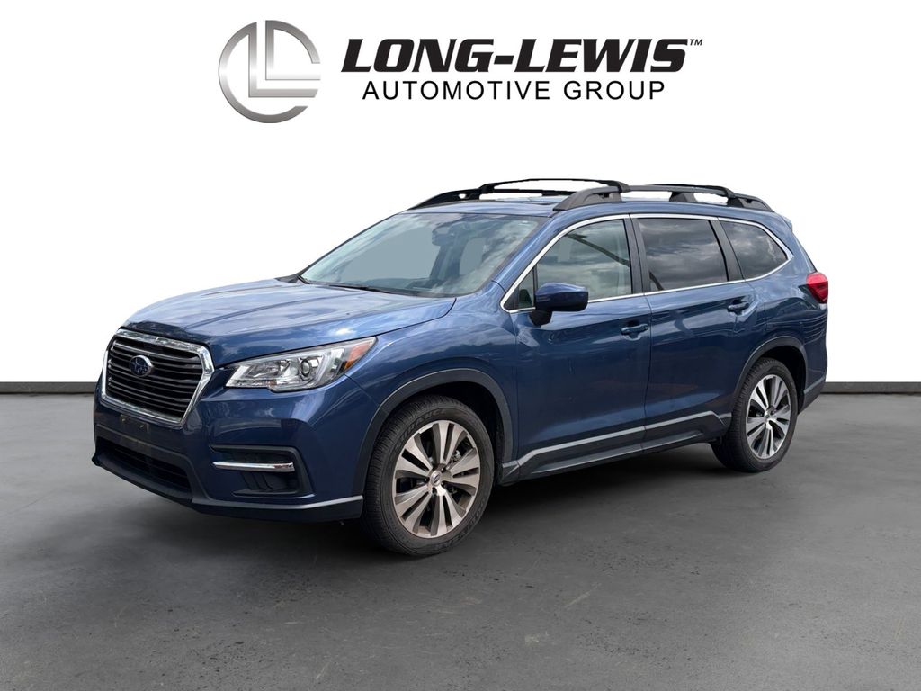 2019 Subaru Ascent Premium Abyss Blue Pearl Premium AWD Lineartronic CVT 2.4L DOHC 20" Alloy Wheels, 3rd row seats: bench, 4-Wheel Disc Brakes, 6 Speakers, ABS brakes, Air Conditioning, All-Weather Floor Liners, Alloy wheels, AM/FM radio: SiriusXM, Auto-Dimming Rear View Compass Mirror w/HomeLink, Automatic temperature control, Axle Ratio: 4.44, Brake assist, Bumpers: body-color, Cargo Area Cover, CD player, Delay-off headlights, Driver door bin, Driver vanity mirror, Dual front impact airbags, Dual front side impact airbags, Dual Glass Panoramic Power Moonroof, Electronic Stability Control, Emergency communication system: STARLINK Safety and Security, Exterior Parking Camera Rear, Four wheel independent suspension, Front anti-roll bar, Front Bucket Seats, Front Center Armrest, Front dual zone A/C, Front reading lights, Fully automatic headlights, Heated door mirrors, Heated Front Bucket Seats, Heated front seats, Illuminated entry, Keyless Access w/Push-Button Start, Knee airbag, Low tire pressure warning, Occupant sensing airbag, Outside temperature display, Overhead airbag, Overhead console, Panic alarm, Passenger door bin, Passenger vanity mirror, Power door mirrors, Power driver seat, Power Rear Gate w/Automatic Close & Height Memory, Power steering, Power windows, PRG/KAS/ADM/RAB/20" Wheels/Moonroof/Nav/Cargo Cover, Radio data system, Radio: Subaru STARLINK 8.0" Multimedia Nav System, Radio: Subaru STARLINK 8.0" Multimedia Plus System, Rear air conditioning, Rear anti-roll bar, Rear reading lights, Rear seat center armrest, Rear window defroster, Rear window wiper, Remote keyless entry, Reverse Automatic Braking (RAB) System, Roof rack: rails only, Security system, Speed control, Spill Resistant Cloth Upholstery, Split folding rear seat, Spoiler, STARLINK/Apple CarPlay/Android Auto, Steering wheel mounted audio controls, Tachometer, Telescoping steering wheel, Tilt steering wheel, Traction control, Trip computer, Variably intermittent wipers, Wheels: 18" Gray Aluminum Alloy w/Machine Finish.