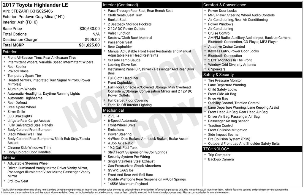2017 Toyota Highlander LE SUV 4-Cylinder DOHC 16V Dual VVT-i