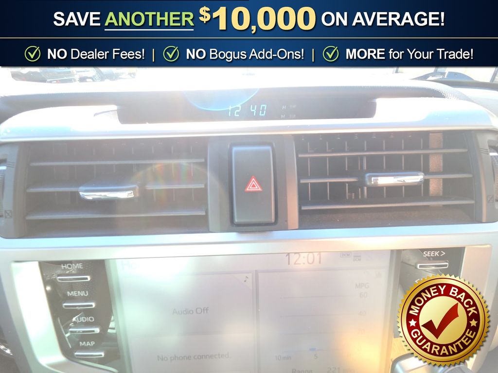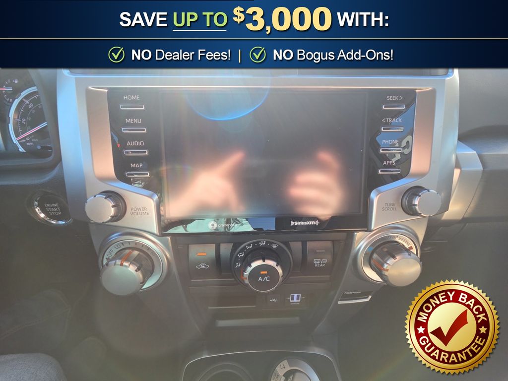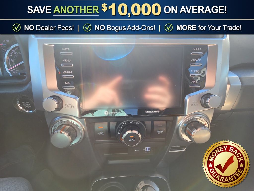 4WD, Black/Graphite w/SofTex Seat Trim, 3.727 Axle Ratio, 4-Wheel Disc Brakes, 8 Speakers, ABS brakes, Air Conditioning, Alloy wheels, AM/FM radio: SiriusXM, Anti-whiplash front head restraints, Apple CarPlay/Android Auto, Auto High-beam Headlights, Black Roof Rails, Brake assist, Bumpers: body-color, Driver door bin, Driver vanity mirror, Dual front impact airbags, Dual front side impact airbags, Electronic Stability Control, Emergency communication system: Safety Connect with 1-year trial, Exterior Parking Camera Rear, Front anti-roll bar, Front Bucket Seats, Front Center Armrest, Front fog lights, Front reading lights, Front wheel independent suspension, Heated door mirrors, Illuminated entry, Knee airbag, Leather Shift Knob, Leather steering wheel, Low tire pressure warning, Occupant sensing airbag, Outside temperature display, Overhead airbag, Overhead console, Panic alarm, Passenger door bin, Passenger vanity mirror, Power door mirrors, Power driver seat, Power steering, Power windows, Radio: Audio, Rear anti-roll bar, Rear seat center armrest, Rear window defroster, Rear window wiper, Remote keyless entry, Roof rack: rails only, Security system, Shift Knob, SofTex Seat Trim, Speed control, Speed-sensing steering, Split folding rear seat, Spoiler, Steering wheel mounted audio controls, Tachometer, Telescoping steering wheel, Tilt steering wheel, Traction control, TRD Sport Badge, TRD Sport Carpet Floor Mats, Trip computer, Variably intermittent wipers, Wheels: 20" Dark Gray Metallic Machined-Face Alloy, 4WD, Black/Graphite w/SofTex Seat Trim. 2022 Toyota 4Runner TRD Sport
