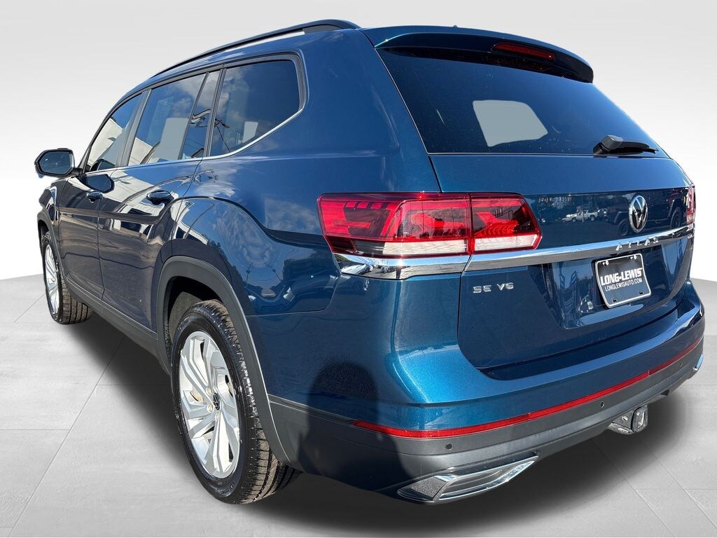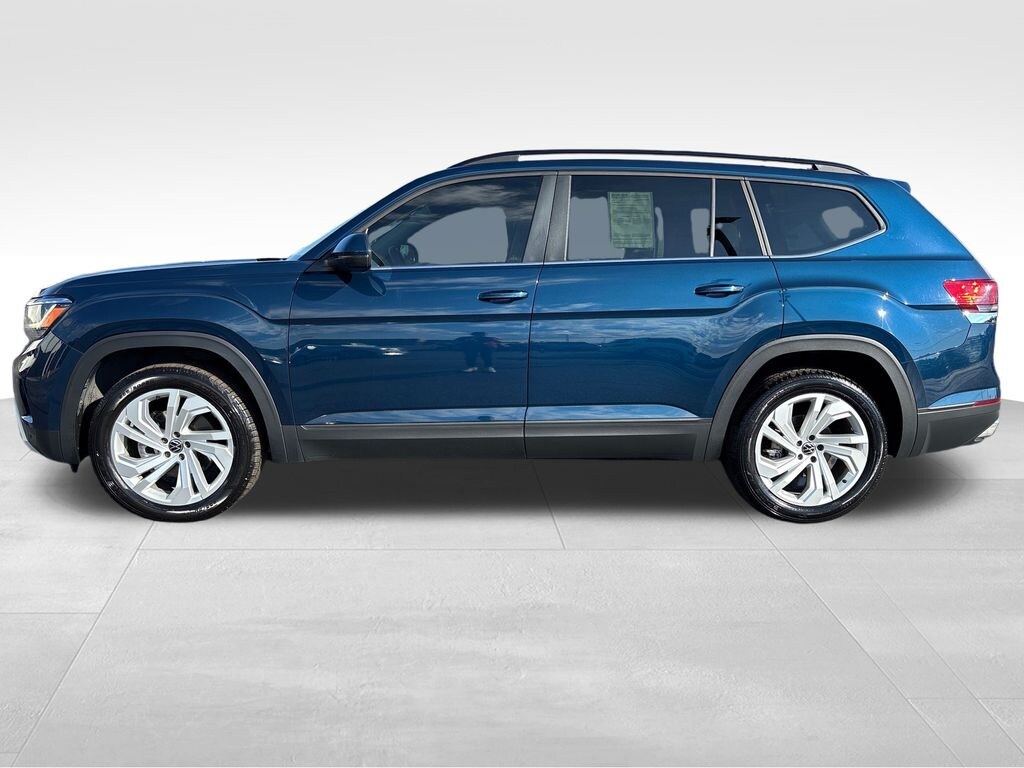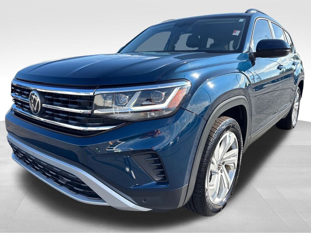 2021 Volkswagen Atlas 3.6L V6 SE w/Technology Blue Metallic 3.6L V6 SE w/Technology FWD 8-Speed Automatic with Tiptronic 3.6L VR6 2nd-Row Dual Captain's Chairs, 3.60 Axle Ratio, 3rd row seats: split-bench, 4-Wheel Disc Brakes, 6 Speakers, ABS brakes, Air Conditioning, Alloy wheels, AM/FM radio: SiriusXM with 360L, Auto-dimming Rear-View mirror, Automatic temperature control, Brake assist, Bumpers: body-color, Compass, Delay-off headlights, Driver door bin, Driver vanity mirror, Dual front impact airbags, Dual front side impact airbags, Electronic Stability Control, Emergency communication system: VW Car-Net services (capabilities require enrollment or subscription), Exterior Parking Camera Rear, Forward collision: FCW w/Autonomous Emergency Braking mitigation, Four wheel independent suspension, Frameless Self-Dimming Rearview Mirror, Front anti-roll bar, Front Bucket Seats, Front Center Armrest, Front dual zone A/C, Front fog lights, Front reading lights, Fully automatic headlights, Heated Comfort Front Bucket Seats, Heated door mirrors, Heated front seats, Heavy Duty Trunk Liner w/VW CarGo Blocks, Illuminated entry, Leather Shift Knob, Low tire pressure warning, Occupant sensing airbag, Outside temperature display, Overhead airbag, Overhead console, Panic alarm, Passenger door bin, Passenger vanity mirror, Perforated V-Tex Leatherette Seating Surfaces, Power door mirrors, Power driver seat, Power Liftgate, Power steering, Power windows, Privacy Cover, Radio data system, Rain sensing wipers, Rear air conditioning, Rear anti-roll bar, Rear reading lights, Rear seat center armrest, Rear window defroster, Rear window wiper, Remote keyless entry, Roof rack: rails only, Rubber Mats Kit - Captain's Chairs, Security system, Speed control, Speed-sensing steering, Split folding rear seat, Spoiler, Standard Suspension, Steering wheel mounted audio controls, Tachometer, Telescoping steering wheel, Tilt steering wheel, Towing Package, Traction control, Trip computer, Turn signal indicator mirrors, Variably intermittent wipers, VW Care, Wheels: 20" 5-Spoke Silver Alloy.