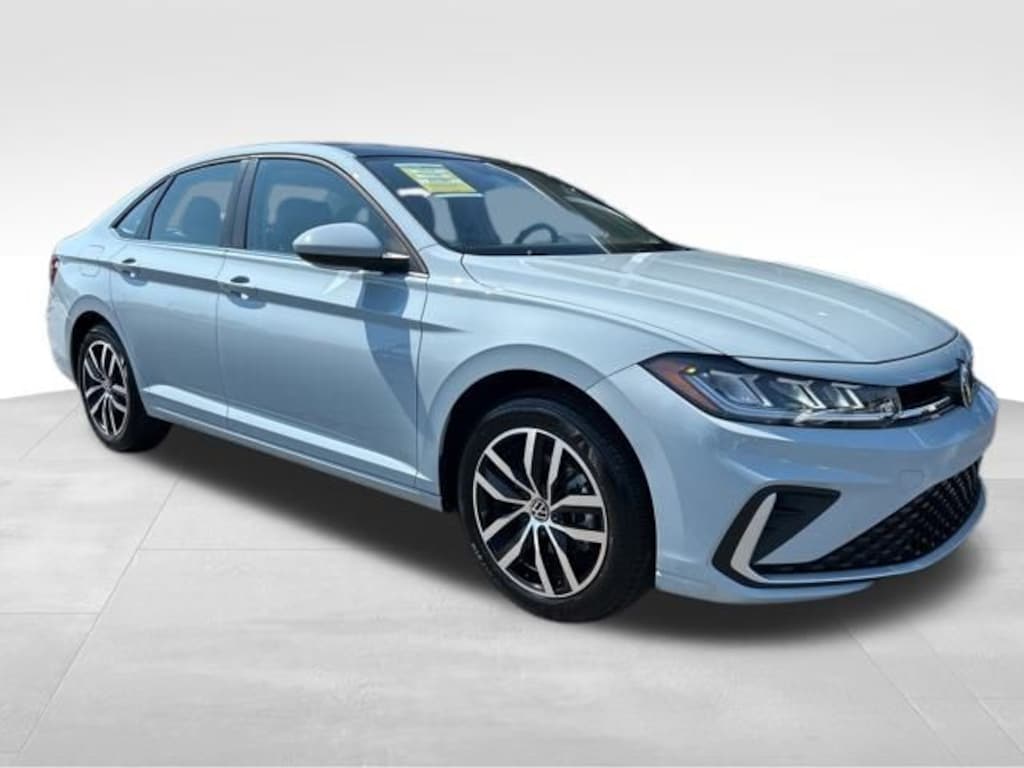 2025 Volkswagen Jetta 1.5T SE Monument Gray 1.5T SE FWD 8-Speed Automatic with Tiptronic 1.5L I-4 DI DOHC Turbocharged Grigio/Titan Black Premium Synthetic, 4-Wheel Disc Brakes, 6 Speakers, ABS brakes, Active Blind Spot Monitor, Air Conditioning, Alloy wheels, AM/FM radio: SiriusXM with 360L, Auto-dimming Rear-View mirror, Auto-Dimming Rearview Mirror w/HomeLink Connect, Automatic temperature control, Brake assist, Bumpers: body-color, CloudTex & V-Tex Leatherette Seat Trim, Delay-off headlights, Driver door bin, Driver vanity mirror, Dual front impact airbags, Dual front side impact airbags, Electronic Stability Control, Emergency communication system: VW Car-Net Safe & Secure 5-year, Exterior Parking Camera Rear, First Aid Kit, Front anti-roll bar, Front Bucket Seats, Front Center Armrest, Front Center Armrest Storage Organizing Trays, Front dual zone A/C, Front wheel independent suspension, Fully automatic headlights, Heated door mirrors, Heated Front Seats, Heated front seats, Heavy Duty Trunk Liner w/VW CarGo Blocks, Illuminated entry, Leather Shift Knob, Leather steering wheel, Low tire pressure warning, Occupant sensing airbag, Outside temperature display, Overhead airbag, Overhead console, Panic alarm, Passenger door bin, Passenger vanity mirror, Power door mirrors, Power driver seat, Power steering, Power Tilting & Sliding Sunroof, Power windows, Radio data system, Radio: MIB3 Composition Media w/8" Touchscreen, Rain sensing wipers, Rear anti-roll bar, Rear reading lights, Rear seat center armrest, Rear window defroster, Remote keyless entry, Rubber Monster Mats Kit (Set of 4), Speed control, Speed-sensing steering, Split folding rear seat, Steering wheel mounted audio controls, Sunroof Package, Tachometer, Telescoping steering wheel, Tilt steering wheel, Traction control, Trip computer, Variably intermittent wipers, VW Care, Wheels: 17" Twin 5-Spoke 2-Tone Machined Alloy, Grigio/Titan Black Premium Synthetic.